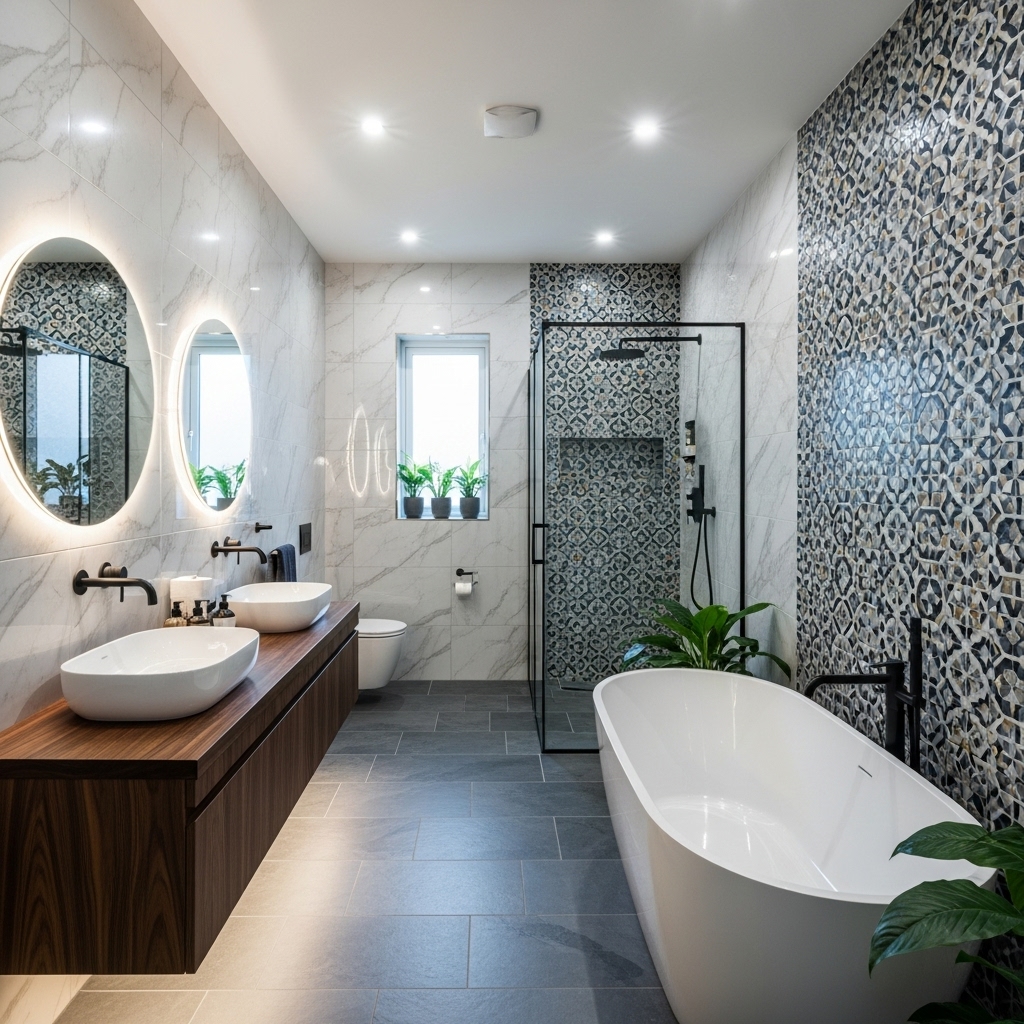 Exklusiv Badrumsrenovering med Mönsterkakel och Spa-känsla